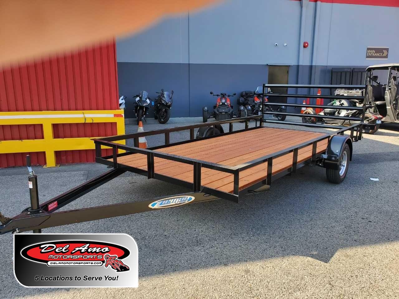 7 x 14 wooden deck with 12" angle iron side rails, rear fold down ramp, single axle, and post jack. Every Zieman trailer meets or exceeds all applicable Federal Motor Vehicle safety standards. All trailers are sand blasted and have a black or white powdercoated finish. Jack and caster are standard on all models.
